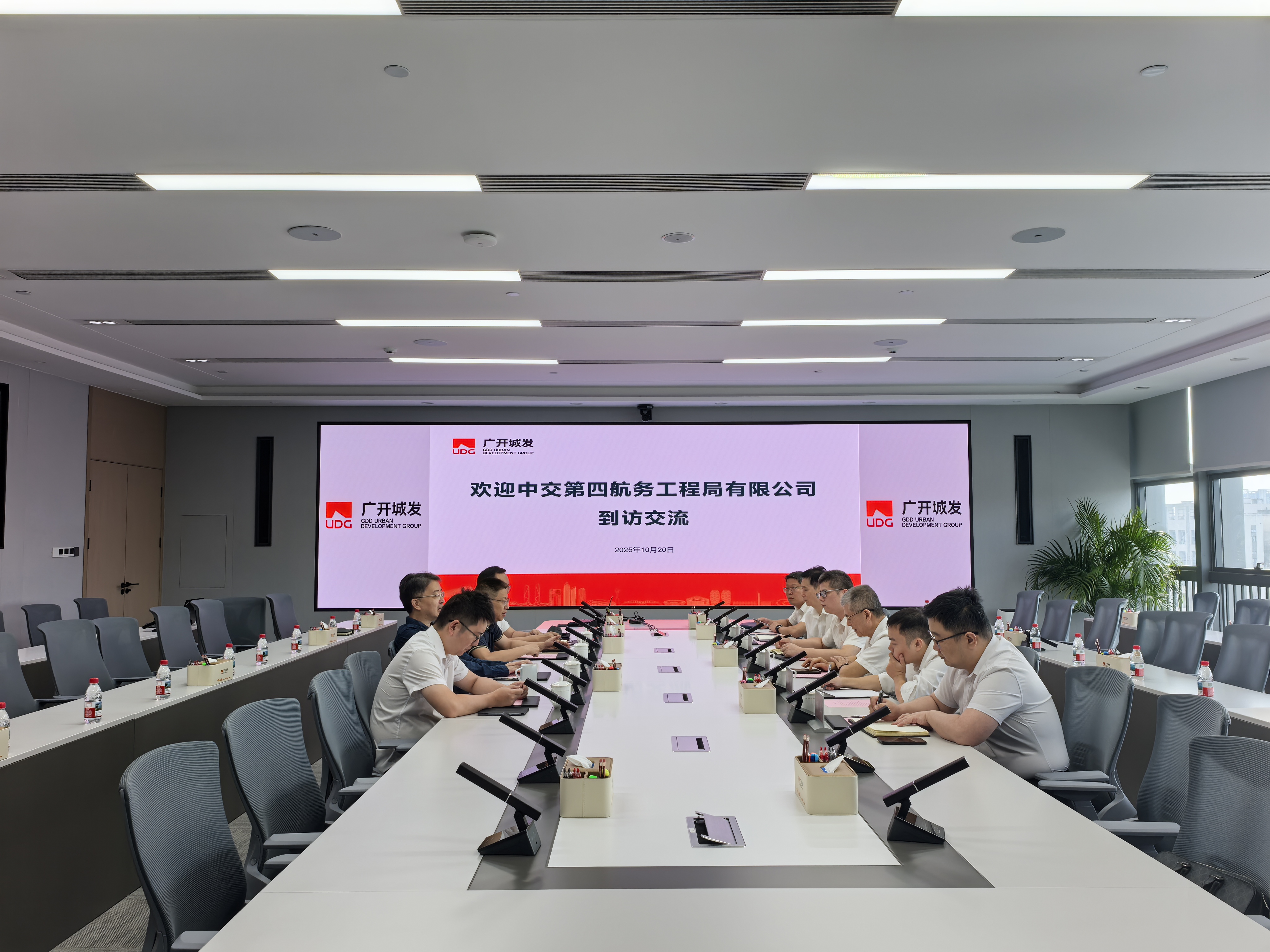 10月20日,四航局党委副书记、总经理方丘洚拜会广州开发区城市发展集团有限公司党委书记、董事长李雄晖,双方就进一步深化合作进行座谈交流。