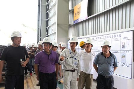 张志良一行在沉管预制工厂实地参观了国内外先进的数控钢筋加工设备、沉管预制钢模板及首节沉管管节钢筋绑扎情况,听取了关于沉管预制厂整体格局、沉管预制关键工艺流程、厂区标准化管理、施工人员培训及生活情况等的介绍。张志良一行还观看了沉管预制厂、沉管预制工艺流程3D动画,并就项目组织管理架构、混凝土温控措施、沉管混凝土耐久性等问题与项目人员展开深入探讨。
