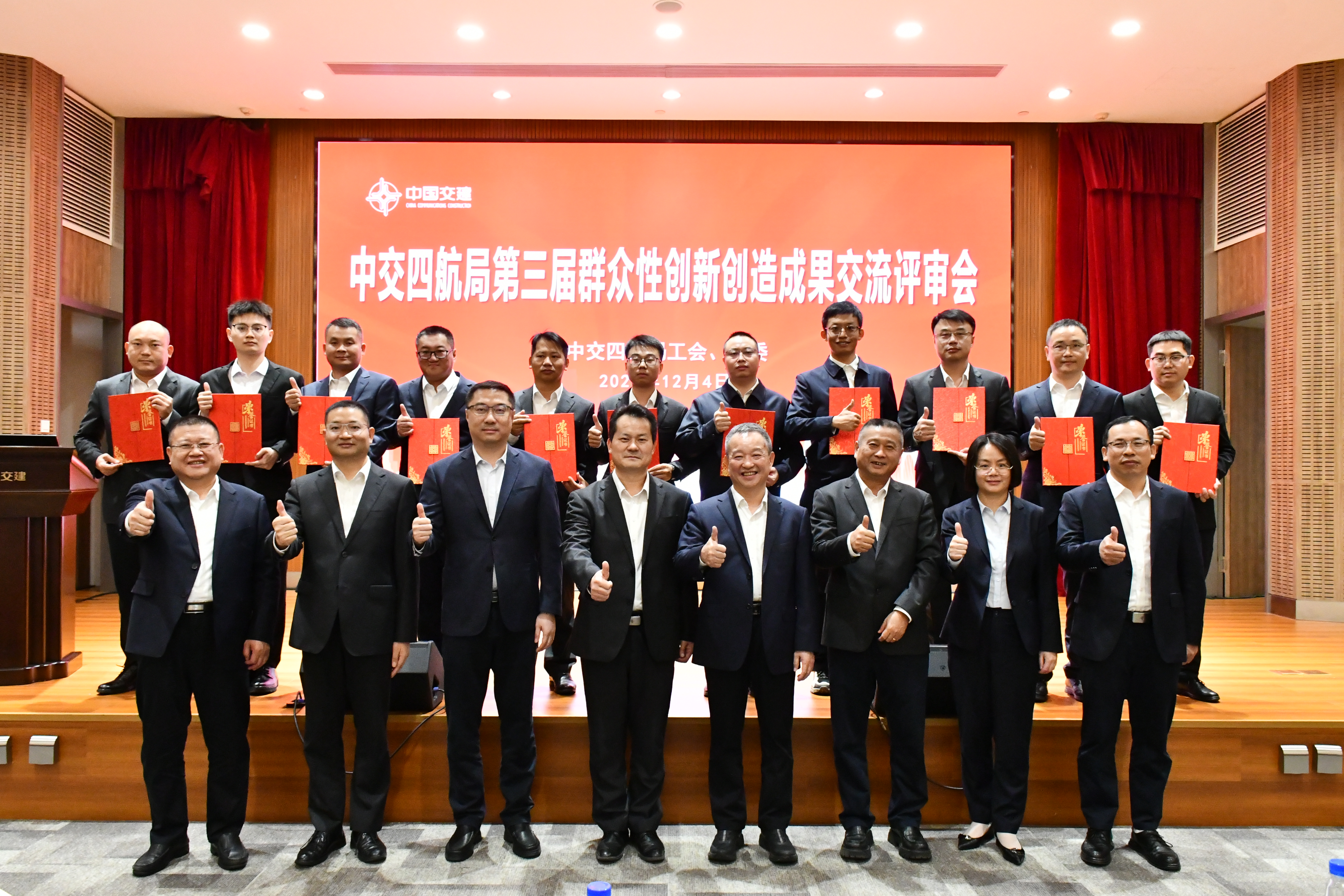 12月4日,四航局第三届群众性创新创造成果交流评审会在广州之窗召开。四航局党委副书记、工会主席曾瑞雄,副总经理、总工程师梁杰忠出席活动并讲话。