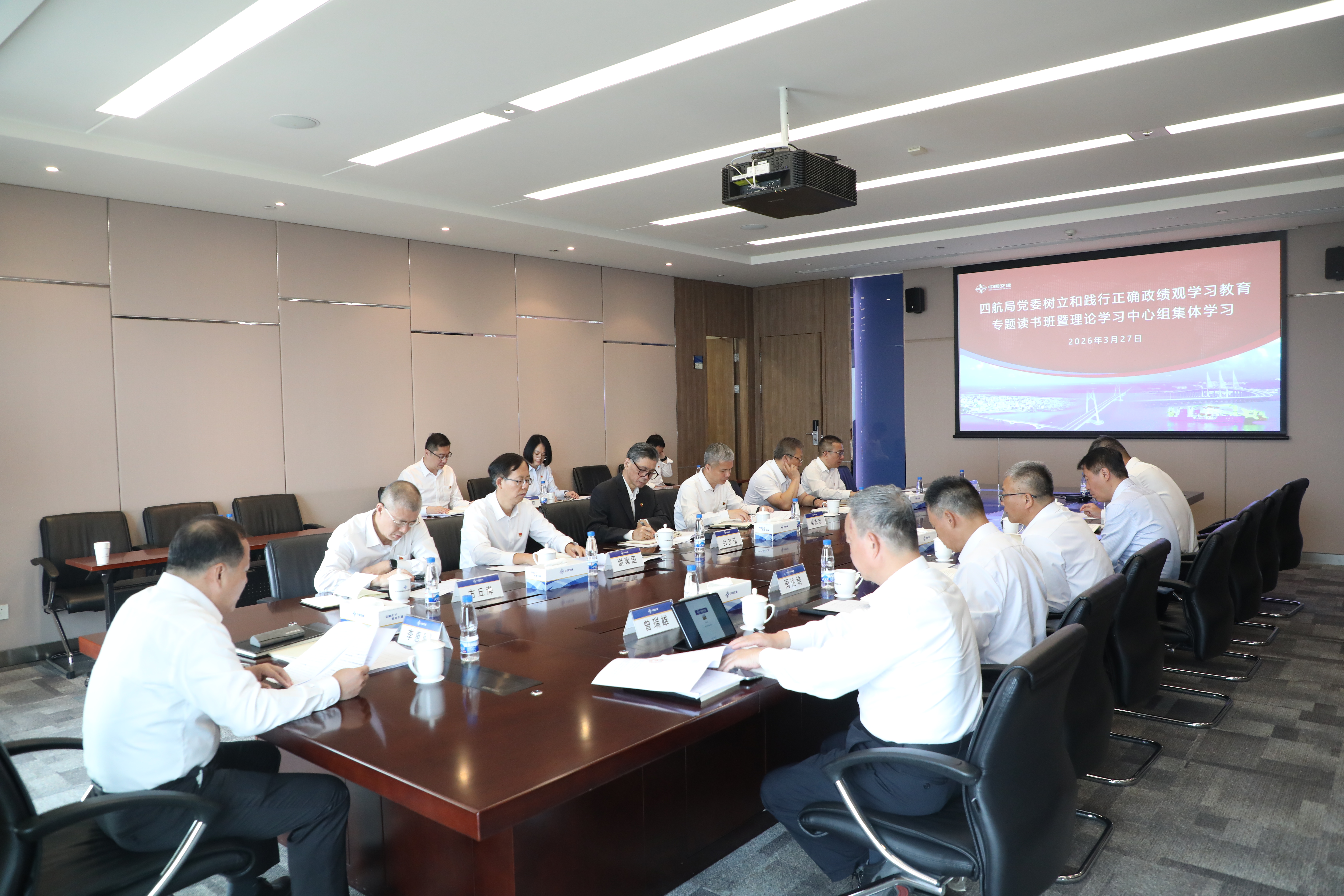 3月27日,四航局党委举行树立和践行正确政绩观学习教育专题读书班暨2026年第2次理论学习中心组集体学习,专题学习《习近平关于树立和践行正确政绩观论述摘编》,开展树立和践行正确政绩观大讨论暨形势任务教育。四航局党委书记、董事长李惠明主持会议并提出工作要求。